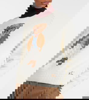 Reflecting the relaxed ease and timeless spirit of Polo Ralph Lauren Lauren, this chunky cotton jumper features a rolled neckline and an intarsia-knit and hand-embroidered motif of a Polo Bear duo inspired by Ralph Lauren and Ricky Lauren.
