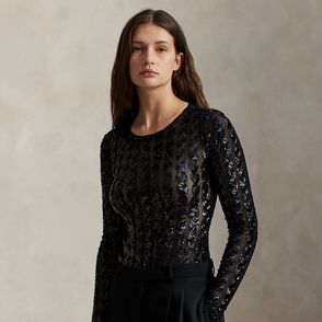 All-over sequinned embellishments bring light-catching shine and dimension to this slim-fitting roll neck, which is made with a soft stretch mesh shell.