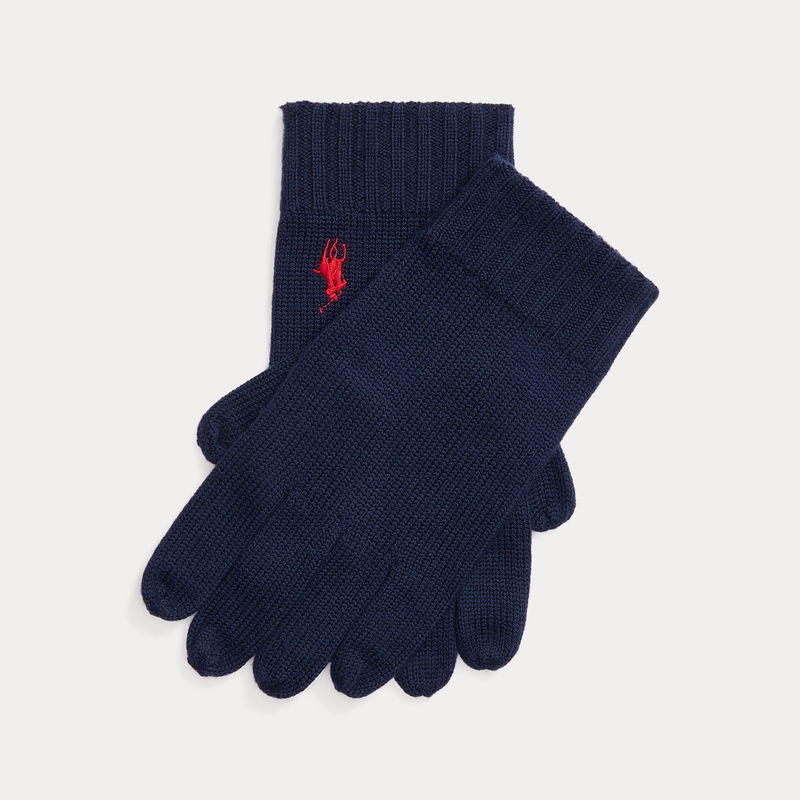 Knit from worsted wool yarns, which are specially treated for easy care while maintaining durability and softness, these gloves are finished with Ralph Lauren Lauren's signature embroidered Pony.
