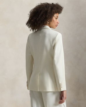 Made from Italian wool and silk lapels, this blazer is cut for a straight fit with structured shoulder pads.