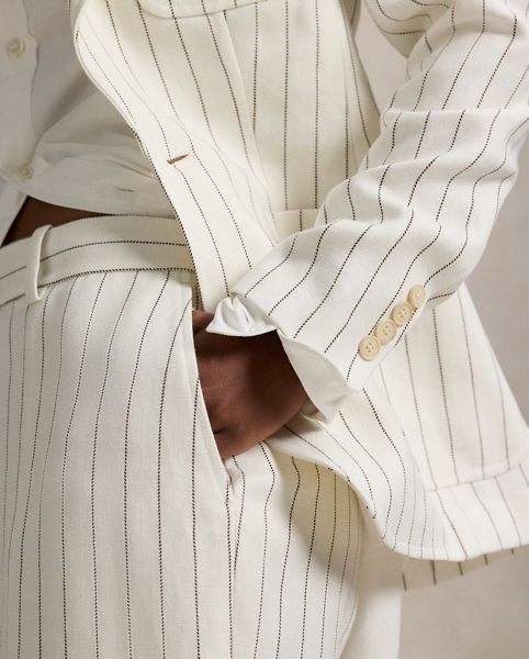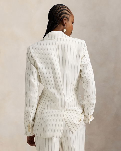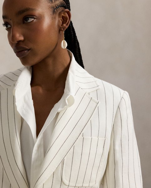 Single-Breasted Striped Hemp Blazer