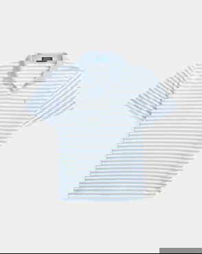 An American style standard since 1972, the Polo shirt has been imitated but never matched. Over the decades, Ralph Lauren Lauren has re-imagined his signature style in a wide array of colours and fits, yet all retain the quality and attention to detail of the iconic original. This striped version is crafted from textured slub jersey dyed with indigo.