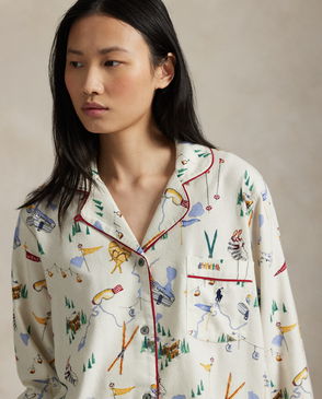 Menswear-inspired stripes and contrast piped trim define this cotton pyjama set, which pairs a long-sleeve buttoned shirt and full-length trousers.