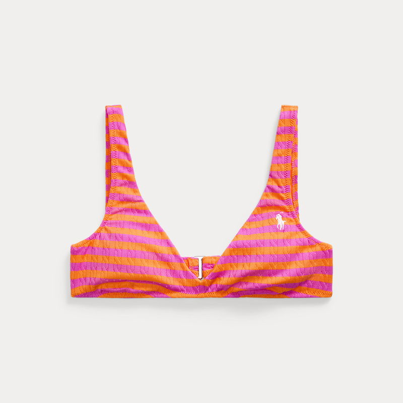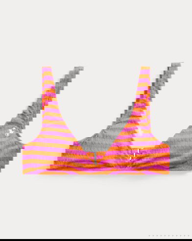 This striped bikini top features a V-neck silhouette and is embroidered with our signature embroidered Pony on the left chest.