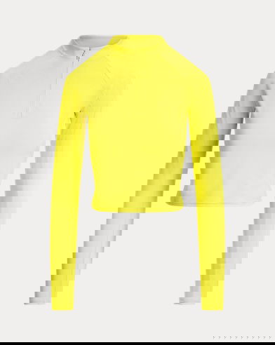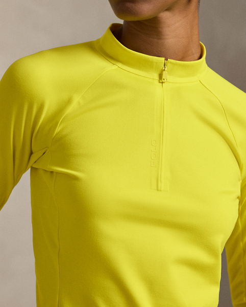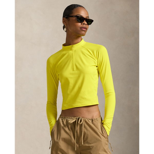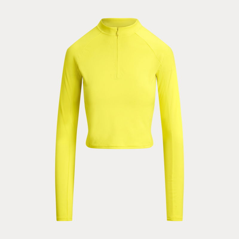 Crafted from stretch-blend sueded jersey for a velvety smooth hand, this half-zip mockneck pullover combines long raglan sleeves with a cropped, slim silhouette. Our rubber-printed "Polo" logo adds a signature finish.