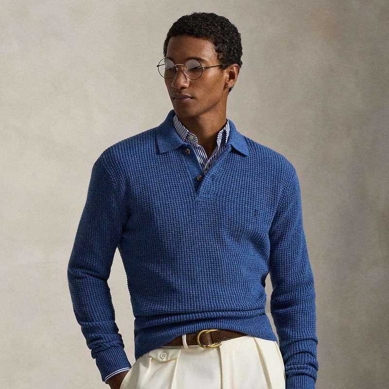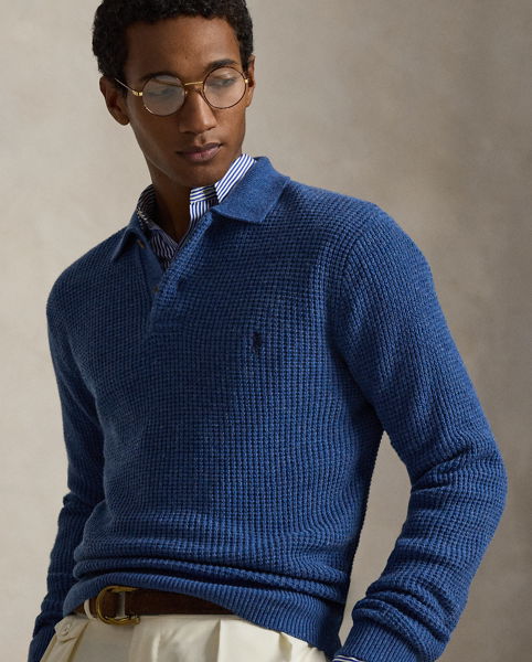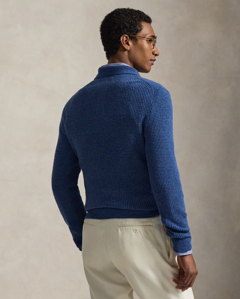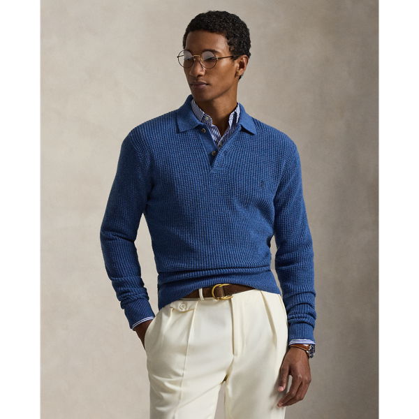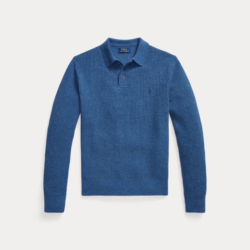 Textured Wool-Cotton Polo-Collar Jumper
