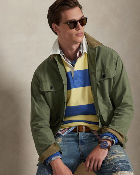 Polo distils the all-American glamour and upbeat style of Ralph Lauren into more relaxed, preppy pieces for downtime, weekends and holidays, for men and women. From iconic polo shirts to effortless tailoring, shirting, printed dresses, colourful knitwear, denim and chambray and organic cotton tracksuits and loungewear, it all comes with the signature Ralph Lauren look.