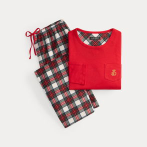 This waffle-knit pyjama set is crafted with a stretch-cotton blend selected for its soft hand and breathability. Ralph Lauren Lauren's signature embroidered Pony accents the left chest of the short-sleeve tee and the trousers feature a "Polo Ralph Lauren Lauren" waistband.