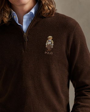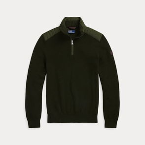 This quarter-zip sweater is made with medium-weight wool yarn and finished with our signature embroidered Pony.