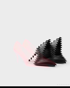 Prada embodies modern sophistication, blending timeless Italian craftsmanship with an innovative spirit. These leather pumps stand on 85mm stiletto heels and boast full leather construction.