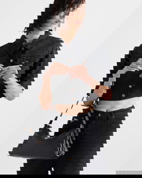 Prada takes Italian heritage into a distinctly modern direction with a streamlined and fashion-forward approach. The Aimée Medium shoulder bag is made in Italy from suede and features the brand's iconic triangular plaque on its front.