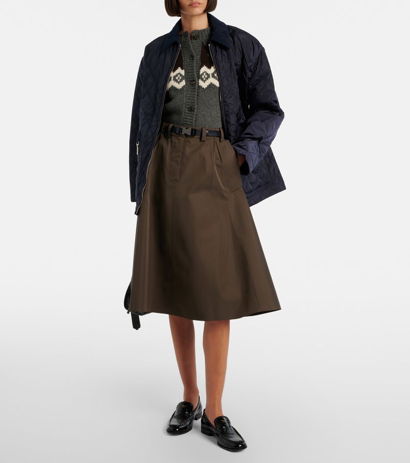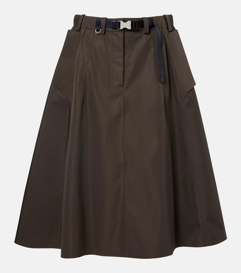 This skirt from Prada showcases a technical fabric construction and a flared, midi-length silhouette. The design is fitted with spacious pockets and comes with a detachable belt for a secure fit.