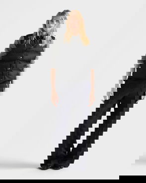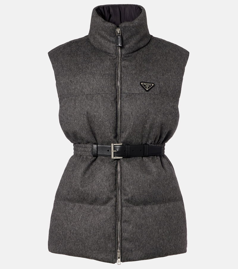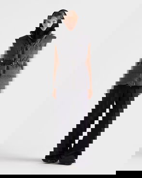 Prada embodies modern sophistication, blending timeless Italian craftsmanship with an innovative spirit. Crafted from virgin wool, this down vest is finished with a cinching belt, a high neck, and the signature triangle logo.