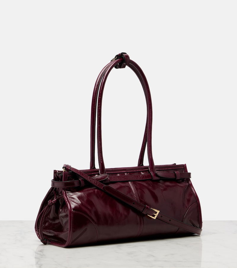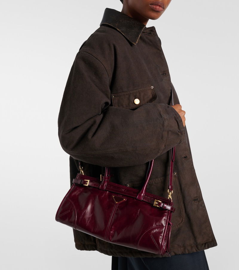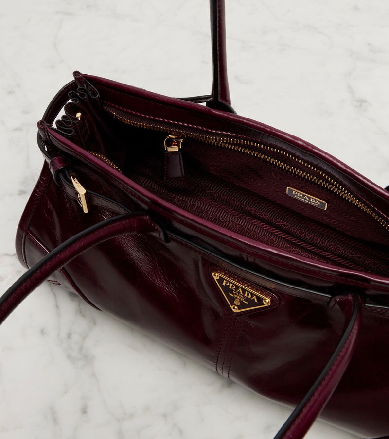 Instantly recognizable, the triangle has stood as Prada's enduring emblem since 1913. The iconic symbol is featured front and center on the Bonnie Medium tote bag, crafted from polished leather to a sleek silhouette with gold-toned hardware.