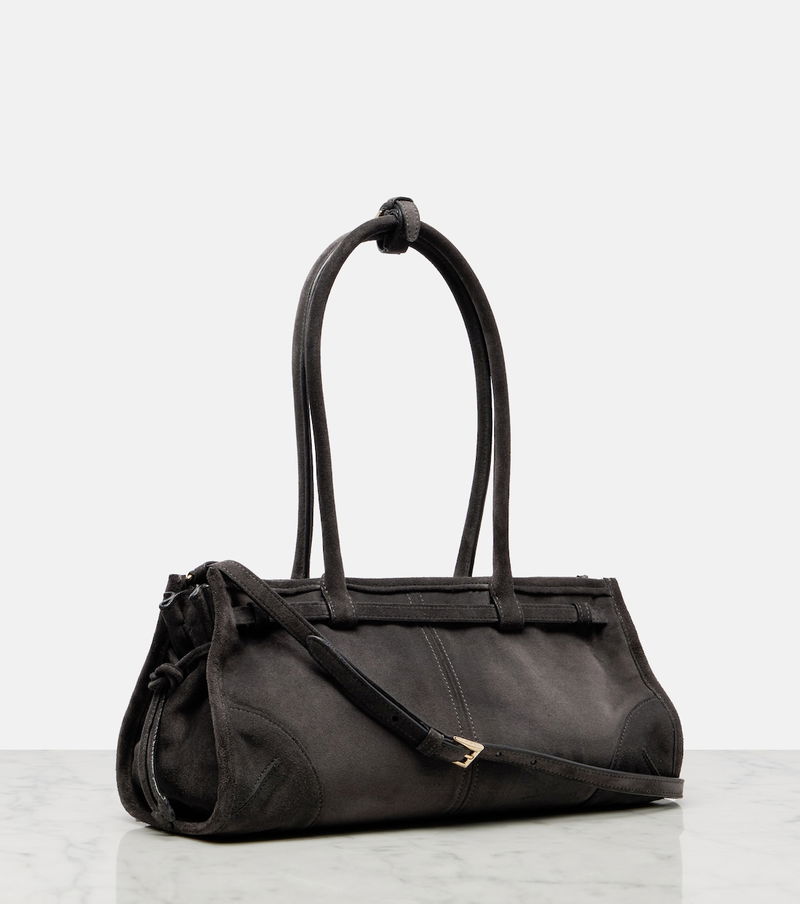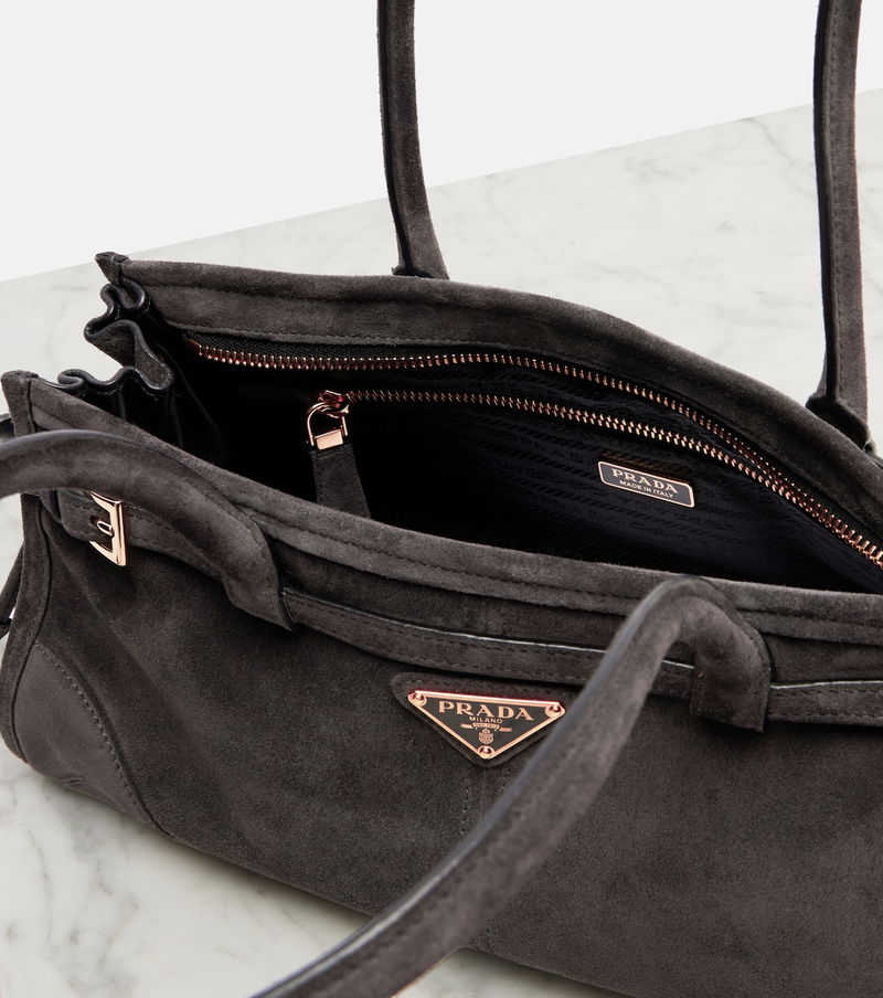 Crafted from suede, the Prada Bonnie Medium shoulder bag features an elongated silhouette, buckle detailing, and the iconic triangle logo. Prada takes Italian heritage into a distinctly modern direction with a streamlined and fashion-forward approach.