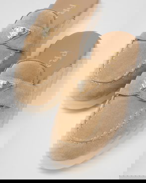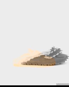Prada suede and shearling mules.