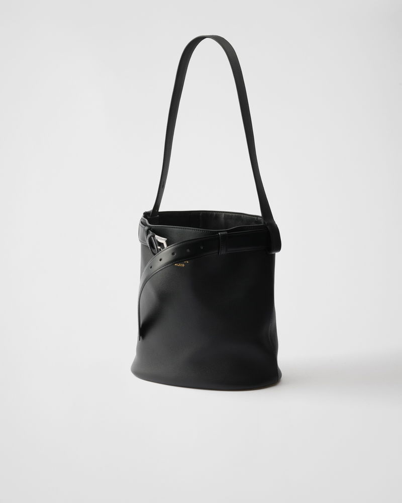 Buckle Leather Bucket Bag With Belt