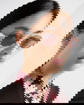 Prada embodies modern sophistication, blending timeless Italian craftsmanship with an innovative spirit. The Prada Cartiglio sunglasses boast a cat-eye silhouette with tonal lenses and logo details on the temples.