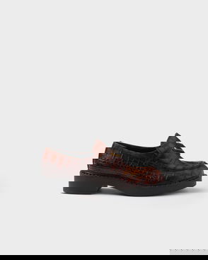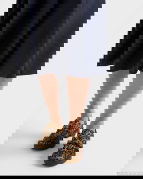 The Prada Chocolate loafers are a modern take on a classic silhouette. Crafted in Italy from soft calf hair, the pair boasts a bold leopard print and the signature triangle logo.