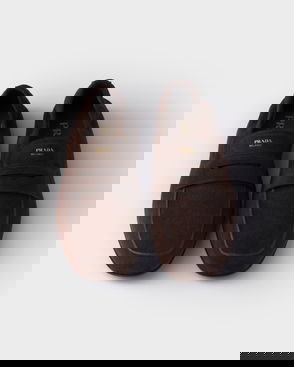 Prada reinvents a signature style with these Chocolate loafers. Crafted from suede, the pair is set on chunky soles and finished with gold-toned logo plaques on the uppers, for a distinctive touch.