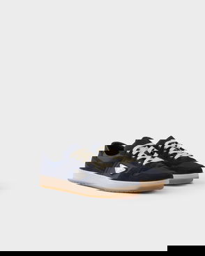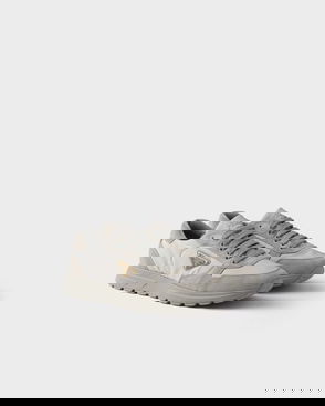 Offering a more sustainable take on a signature fabric, Prada’s Re-Nylon products are made from regenerated ocean plastic waste. The Collapse sneakers are made with this iconic fabric and suede and feature contrasting shoestrings.