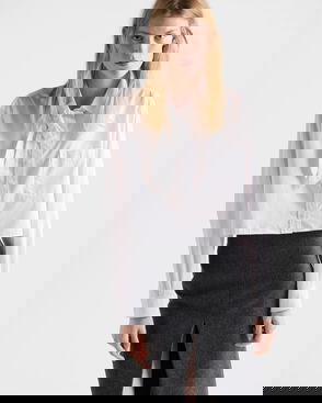 Prada takes Italian heritage into a distinctly modern direction with a streamlined and fashion-forward approach. This cotton poplin shirt has a loose fit and subtle logo embroidery on the side.