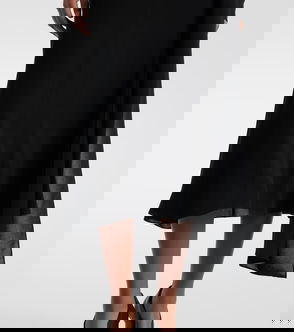 Prada presents a classic take on the LBD with this minimalist midi dress. Crafted in Italy from black crêpe, the style has a cape-like construction with a draped open back and a nipped-in waist. A tonal bow at the neckline provides a considered touch.