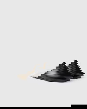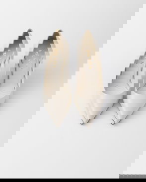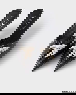 Prada's triangle logo pays tribute to the brand's long-standing connection to the Italian royal family, the House of Savoy. It glints from the side of the Criss Cross mules, a leather pair that features crossing straps and 65mm heels.