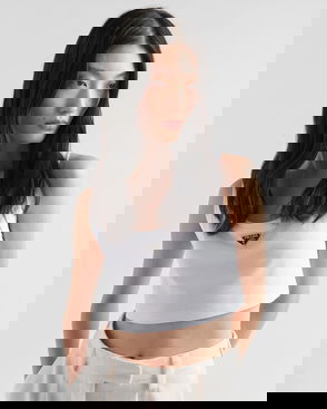Instantly recognizable, the triangle has stood as Prada's enduring emblem since 1913. This cropped top features a rounded neckline and boasts the house's signature motif.