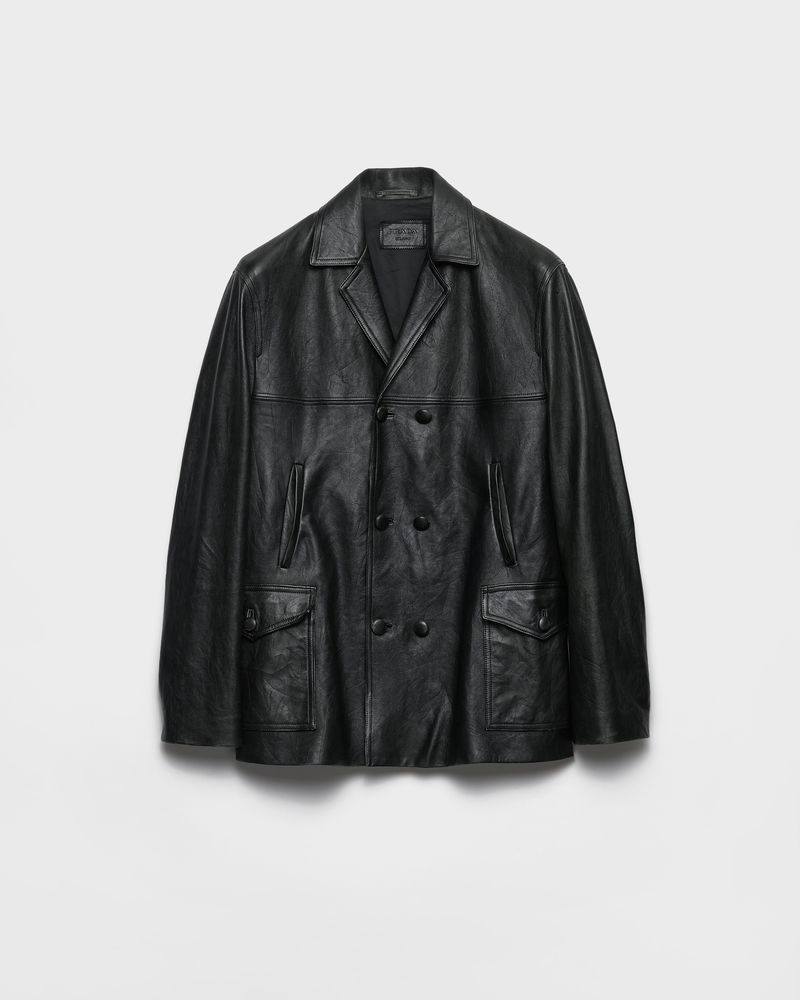 Double-Breasted Nappa Leather Caban Jacket.