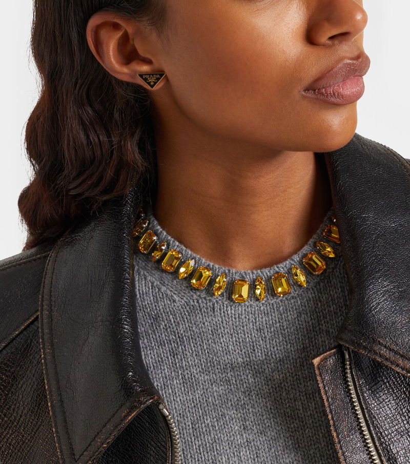 Prada has been synonymous with cutting-edge style since 1913. Crafted from gold-toned brass, these charming earrings feature a triangle logo design set off by a black enamel background.