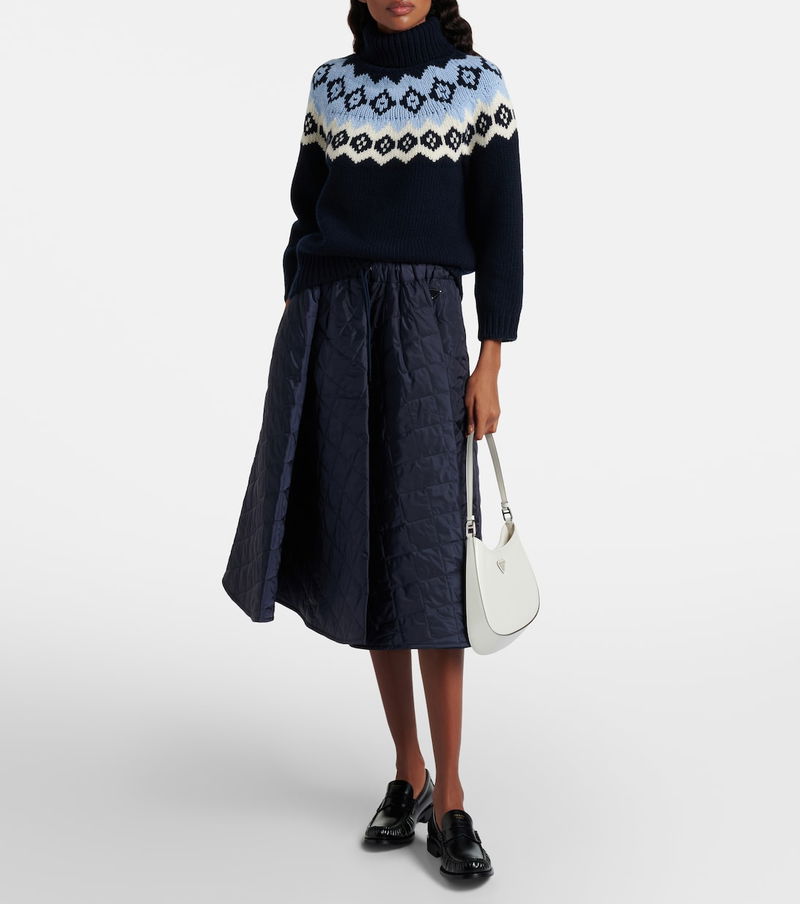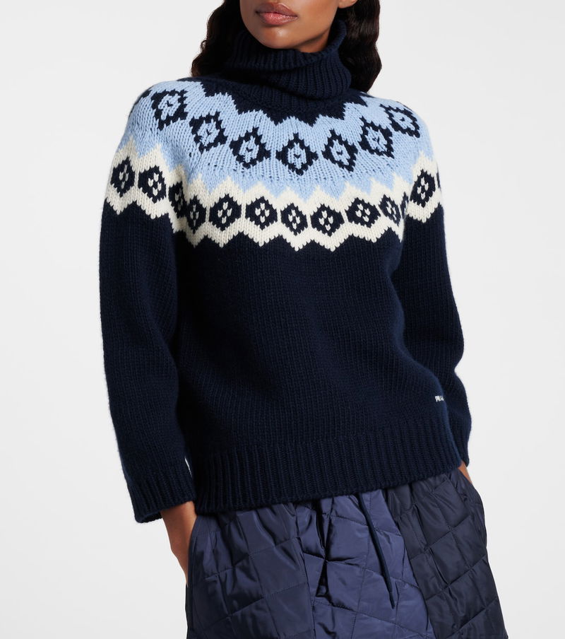Prada embodies modern sophistication, blending timeless Italian craftsmanship with an innovative spirit. This turtleneck sweater is made from a blend of wool and cashmere and features a Fair Isle intarsia motif.