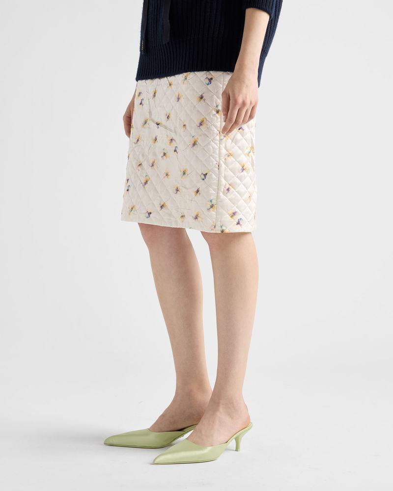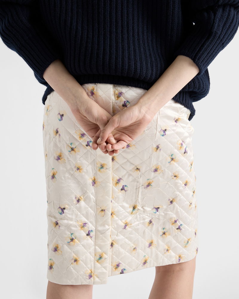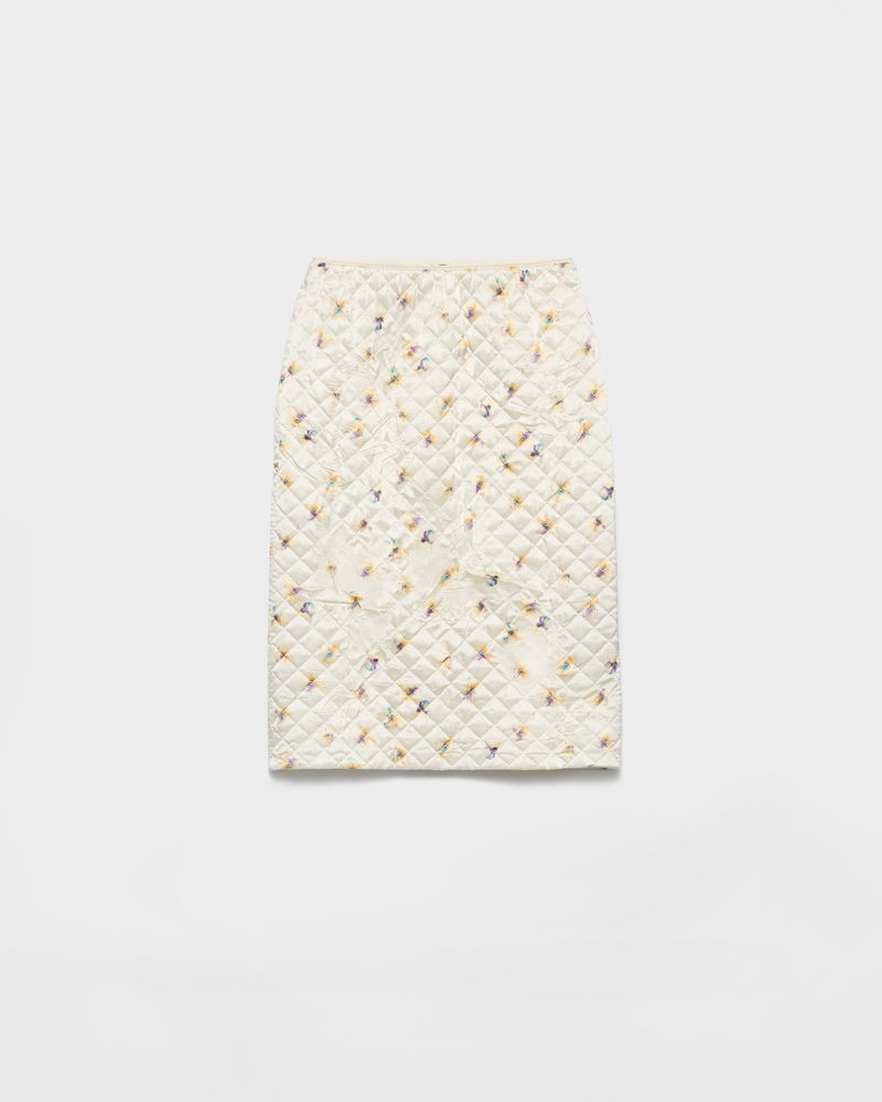 Floral-print Quilted Satin Skirt
