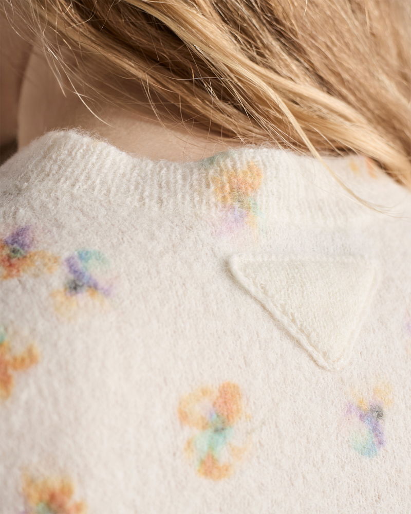 Floral Print Wool Crew-neck Sweater