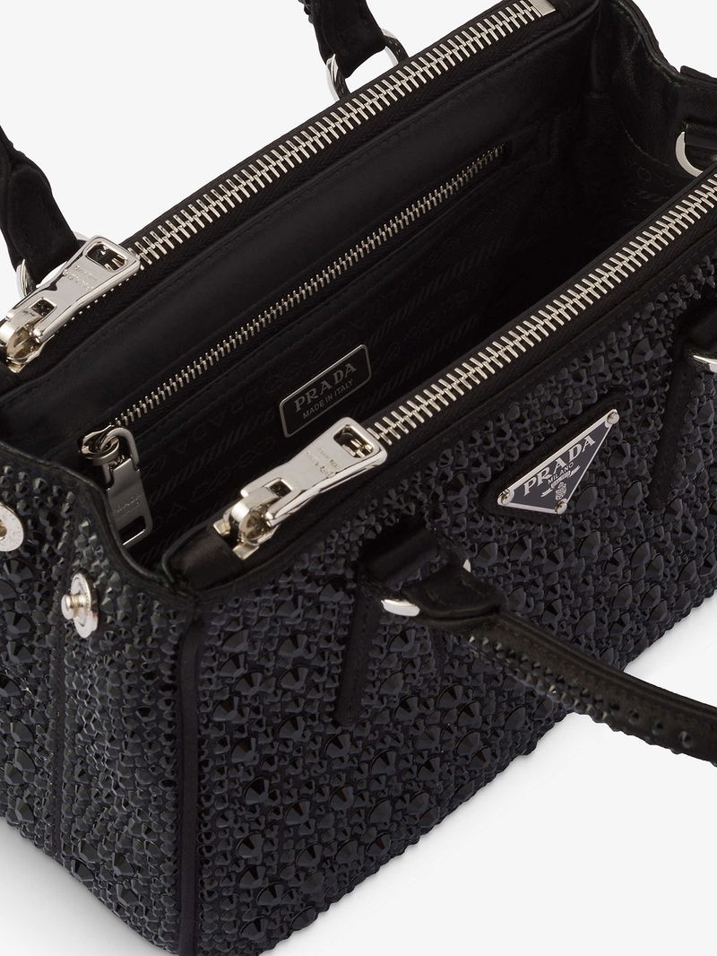 Selfridges Says: Inspired by Milan’s famous shopping arcade, where Prada opened its first boutique in 1913, the inimitable Galleria bag proudly pays homage to the house’s roots. This iteration is made from sumptuous satin and dotted with sparkling crystals, carried by twin top handles and topped off with the iconic triangular brand plaque at the front – but it's not just about looks. A spacious main compartment and an array of internal slip pockets provide ample room for your on-the-go essentials.