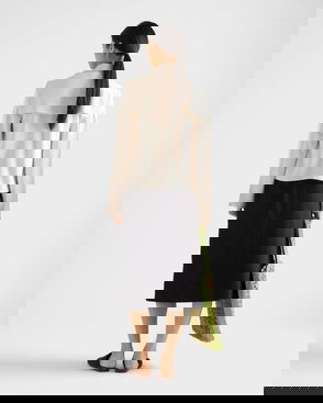 This black skirt is part of the Re-Nylon initiative, where Prada reimagines a material it first incorporated in 1984 as a more responsible alternative made from recycled yarn sourced from discarded carpets, abandoned fishing gear, plastic waste and production offcuts. The full silhouette is suspended from a high-rise, woven waistband secured with a clip buckle followed with slip pockets. Choose tonal separates for a sophisticated appeal.
