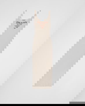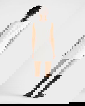 A wave of neon hues highlighted Prada’s futuristic-style AW18 runway show, including this hot pink dress. It’s Italian-crafted from sportswear-inspired grey jersey encased in sheer neon tulle that gathers at the waist, then gently falls to a knee-grazing hemline. Style it with the house's iconic flame sandals for a vibrant event edit.