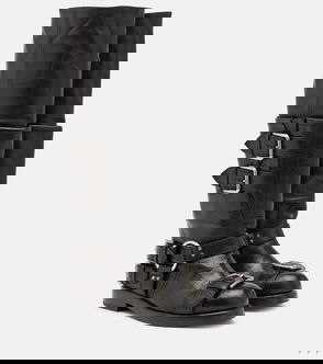 Prada takes Italian heritage into a distinctly modern direction with a streamlined and fashion-forward approach. Crafted from brushed leather, these knee-high boots are complemented by a detachable pouch and gold hardware, adding versatility to their sleek design.