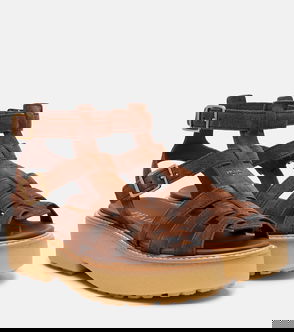 Prada takes Italian heritage into a distinctly modern direction with a streamlined and fashion-forward approach. Made in Italy from brown brushed leather, these sandals are a classic slingback style with criss-crossed toe straps.