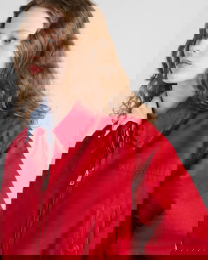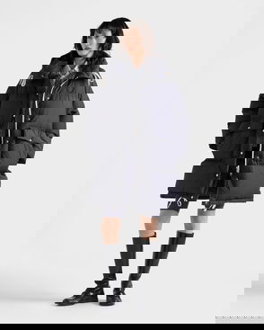 Prada embodies modern sophistication, blending timeless Italian craftsmanship with an innovative spirit. Made from a treated cotton canvas, this oversized jacket has a leather pointed collar with a distressed finish.