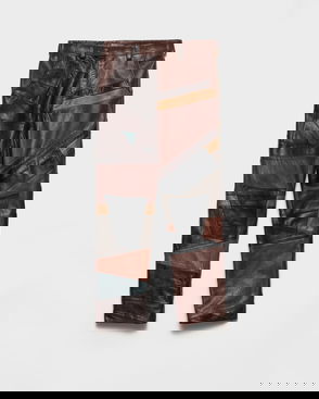 Leather-trimmed cotton straight pants.