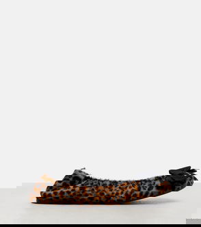 Prada's girlish whimsy is succintly translated into these brown leopard-print flats. They're crafted in Italy with a point toe that's set with a small black leather bow and a small stacked heel, then finished with coordinating topstitching for a streamlined aesthetic. Let them ground a simple tailored jacket and a skirt.