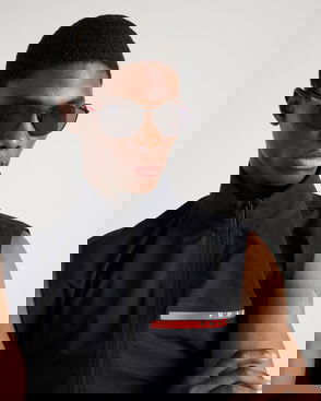 Shaped with slim rectangular frames, these men's sunglasses are designed by Prada. With an impact-resistant makeup, easily repelling water and dust for higher clarity while out and about, this pair are fashioned with classic tinted lenses.