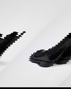 Prada takes Italian heritage into a distinctly modern direction with a streamlined and fashion-forward approach. Made in Italy with leather, these ankle boots have a zipped side and the iconic triangle logo on both heels.