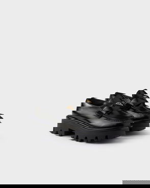 Prada takes Italian heritage into a distinctly modern direction with a streamlined and fashion-forward approach. Made in Italy from brushed leather, these platform loafers feature the brand's iconic triangular logo.