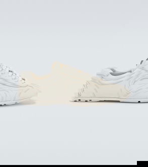 These sneakers from Prada are made from perforated leather. The low-top silhouette is branded with the signature triangle patch on the sides and lettering print on the tongues and heels.
