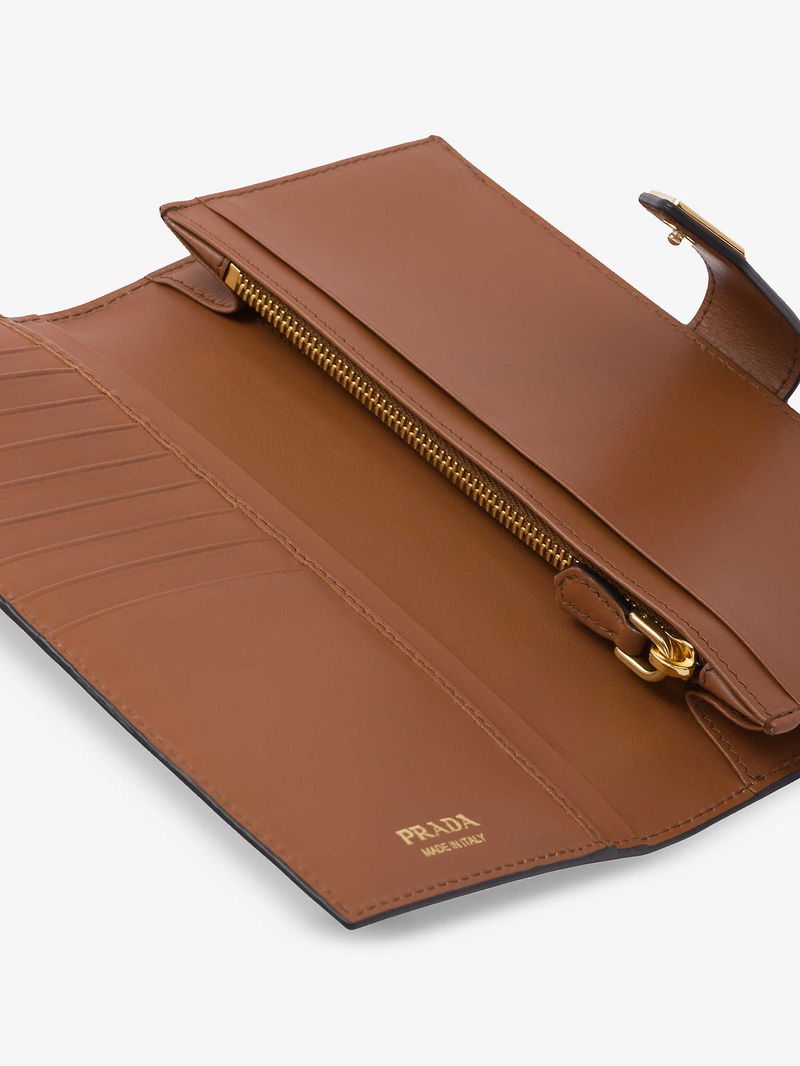 Selfridges Says: Prada earned its crown in the court of fashion by supplying Italy’s greatest monarchs of the early 20th century with gold-trimmed robes and fine leathers, and today, the label continues to honour its royal lineage with polished pieces like this wallet. Sculpted from buttery Saffiano leather to a slender, rectangular silhouette, it’s cut with a scattering of practical card slots and pockets. Then, for a final flicker of majesty, it’s crowned with the label’s triangular emblem in glistening gold-toned metal.