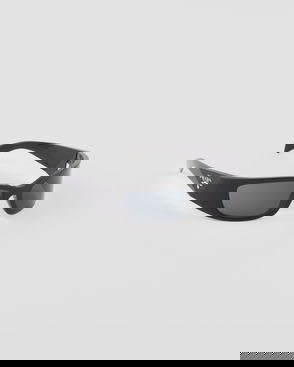 Prada takes Italian heritage into a distinctly modern direction with a streamlined and fashion-forward approach. An emblem of this attitude, these shield sunglasses are meticulously crafted from acetate and complete with silver-toned logo lettering at the temples.