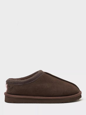 Logo suede slippers.