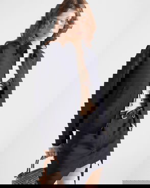 Prada’s mohair and wool blouson is a lightweight style that’s sure to become a feautre of your forever wardrobe. It has a two-way zip front and an elasticated back hem with the and a fabric Prada triangle on the back collar.